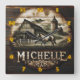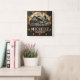 Rustic Barn and Horse Illustration at Twilight Square Wall Clock