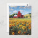 Rustic Barn and Sunflower Field Painting Postcard