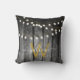 Rustic Barn Black Wood Gold String Lights Monogram Cushion