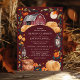 Celebrate your special day with this charming autumn wedding invitation, featuring a deep burgundy background with a rustic red barn, glowing lanterns, and warm autumn florals. The rich, earthy tones and cosy design elements create an inviting atmosphere perfect for a fall countryside wedding. This design beautifully captures the essence of a rustic farm setting, making it an ideal choice for couples seeking a unique and seasonal celebration.