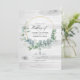 Forest watercolor eucalyptus greenery wedding invitation with gold geometric frame customisable to your event specifics. Ideal for any given theme or garden wedding. The QR code on the reverse directs to your wedding site where people can learn more and rsvp.
