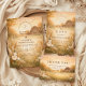 A romantic vintage-inspired design featuring soft wildflowers, golden wheat stems, and glowing lantern accents framing a warm parchment background. Delicate botanical details and earthy neutral tones create a timeless countryside atmosphere with a refined rustic touch. The symmetrical garden framing adds elegance while keeping the overall look soft and inviting. Perfect for an outdoor ceremony, vineyard celebration, or romantic garden setting with classic charm.