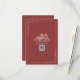 Wedding RSVP with rustic barn illustration with botanical border. Background is muted red. Personalise the text and QR code.
