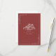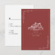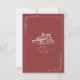 Wedding RSVP with barn illustration with botanical border. Background is muted red.