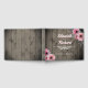 Create your own monogrammed faux barn wood wedding guest book that will become a treasured memento- Popular wedding style with rustic barn wood, old woodgrain look on the front, back and spine. Adorned on front with pretty watercolor look pink floral wreaths on opposite corners. Bride and groom names are monogrammed in script lettering with a pink drop shadow. An elegant, white scroll below. Reads Guest Book in matching grey, elegant letters at bottom. Elegant, rustic country wedding guest book for western weddings, vintage or rustic wood wedding themes, , outdoor garden weddings, weddings in spring or summertime, and popular barn weddings. Note: Not actual wood. All images are printed. Click Customise option to change text colours, size, and font styles or placement. Easy to customise for other special occasions or events like baby showers, country wedding showers, etc. Visit my Zazzle.com/angela65 shop for matching western wood wedding decor and unique, monogrammed wedding guest books.
