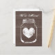 Rustic barn wood change of address moving postcard. Country chic moving postcards with vintage mason jar and faded love heart design. Custom move text; We have moved! or We've moved! Stylish script typography template. Add your new address of your house on the back. Classy shabby chic moving cards for new home in the countryside. Also nice for outdoor housewarming party or business event on location. Trendy brown wooden shed panel background with dark grain lines.