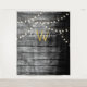 A rustic barn black wood background with hanging gold string lights with matching gold monogram. A country rustic burnt wood feel with a touch of golden glam. Customise the monogram and text and make it your own.