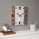 A modern and rustic wall clock with 2 types of wood texture print and bold numbers.
