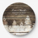 This rustic winter wedding plates features a rustic barn wood background with a faded white pine tree forest. Perfect for your rustic or vintage themed winter wedding. Customise with the names and wedding date of the bride and groom.