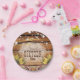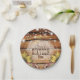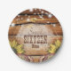 Celebrate your special day with these rustic barn wood paper plates featuring string lights and sunflowers.
