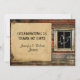 Celebrate your special day with this fun and romantic themed set. Perfect for any rustic, western, country or vintage theme. The background is rustic barn wood with brown, orange and turquoise accents. To the right side is a window with a heart that appears to have been drawn in the dust. A simple parchment style inset sets off your text that is featured on the left side. Perfect for your rustic country western or outdoor wedding anniversary or event.