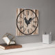 Rustic Barnwood-Look Farmhouse Design Wall Clock with black Rooster silhouette. NOTE: This is not real barnwood, but a simulated photo.