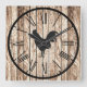 Rustic Barnwood-Look Farmhouse Rooster Design Square Wall Clock