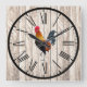 Rustic Barnwood-Look Farmhouse Design Wall Clock with Colourful Strutting Rooster. NOTE: This is not real barnwood, but a simulated photo.