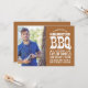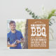 Cool rustic graduation barbecue party invitation with distressed vintage typography. Use the design tools to choose any background colour to coordinate with your school colours or party theme. Add your senior photo and graduation party details on the front. Use the design tools to add more photos and text, edit fonts and colours to create a unique graduation announcement and party invitation.