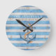 Rustic Beach House Nautical Stripes Personalised Round Clock