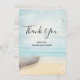 Flat thank You card with a beautiful rustic image. Subtle colours of light blue, sandy brown and gentle white. A beach scene with a boat on the shore and a faded lighthouse off in the distance with birds flying around. An elegant shabby look.