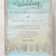 This all-in-one wedding invite includes the invitation and tearaway RSVP, and can be folded and mailed so you don’t need an envelope. Framed with a background of rustic weathered gray wood, beautiful aqua blue ocean waves crash against the beach and string lights decorate the top. These wedding invitations are perfect for destination weddings, as well as any beach and coastal themed wedding.