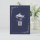 Wedding RSVP with rustic fish illustration with botanical seashell border. Background is navy blue. Personalise the text and QR code.