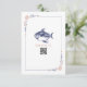 Wedding RSVP with rustic fish illustration with botanical seashell border. Colour scheme is red and blue. Personalise the text and QR code.