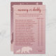 Add fun and laughter to your woodland baby shower with this Mummy or Daddy game card! Guests will guess who is more likely to do certain parenting tasks – mummy or daddy – making it a playful and interactive activity for everyone. Featuring a sweet mama and baby bear on a blush pink background, this rustic game card is perfect for celebrating the parents-to-be while keeping guests entertained.