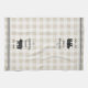 Customise your kitchen with this cute personalised towel featuring your family name or house name and year established in rich charcoal grey lettering accented with a bear illustration on a tonal plaid background.