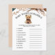 Add laughter and playfulness to the Baby Shower with our 'Rustic Bear Theme Baby Shower Word Scramble Game'. The guests will have a lot of fun completing the list of words on this card, all related to babies, who can unscramble them first! Get yours today, and create unforgettable memories!