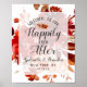 Rustic Beauty Floral Framed Watercolor Bohemian Autumn or Fall Design with Boho Hand Painted Flowers, feathers, and Plenty of colourful orange, rust, red, Burgundy, Marsala, and peach leaves and foliage. With Hand Drawn Line elements, Swirly Hand Lettered Fonts, and Geometric Rectangle Frame Wedding Reception Happily ever after welcome table sign!