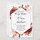 Rustic Beauty Floral Watercolor Bohemian Autumn or Fall Design with Hand Painted Flowers, Watercolor Paint Brush Strokes, and Plenty of colourful orange, rust, red, Burgundy, Marsala, and peach leaves and foliage. With Hand Drawn Line elements, Swirly Hand Lettered Fonts and Rose Gold Geometric Hexagon Frame Shape Baby Girl Shower invitations!