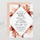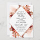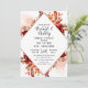 Rustic Beauty Floral Framed Watercolor Bohemian Autumn or Fall Design with Boho Hand Painted Flowers, feathers, and Plenty of colourful orange, rust, red, Burgundy, Marsala, and peach leaves and foliage. With Hand Drawn Line elements, Swirly Hand Lettered Fonts, Rose Gold Glitter Foil, Paint brush Strokes, and Geometric Diamond Frame Brunch and Bubbly Bridal Shower invitations!