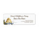 A custom craft, baking, canning or small business honey labels with retro script letters and vintage art of a happy straw beehive with buzzing bees against white clouds, restored with brighter colors and room for your Contents, Farm Name, Name and Address and Contents or Weight.