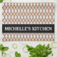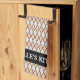This kitchen towel design features a pattern that involves beige and grey diamond shapes, and brown lines. It also features a customised name.