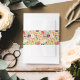 Wedding belly band wrap design features a rustic floral pattern of beautiful summer and fall watercolor flowers, including roses, dahlias, peony flowers, and greenery, in a gorgeous autumn palette of burgundy red, golden yellow, peach orange, blush pink, and shades of green. The neutral beige background colour can be modified.