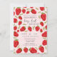 Looking for a strawberry custom birthday invitations with photo? Look at our Rustic Berry First Strawberry 1st Birthday Photo Invitation! It features digital hand-drawn watercolor of pink, red strawberries, pink and white stripes, white flowers, and leaves. Perfect for a strawberry 1st birthday party, setting the tone for a joyful and colourful day. Beautiful red strawberry 1st birthday invite!