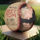 Rustic Best Mum Mother`s Day Photo Collage Softball. The background is a rustic beige texture and the text is a trendy black and red typography. The best mum ever two photo template softball. Add 2 photos and names. You can change any text on the baseball or erase it. Perfect gift for a mother on a Mother`s Day, birthday or Christmas.
