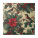 Rustic Bird and Poinsettia Christmas Pattern (13) Ceramic Tile