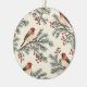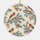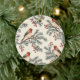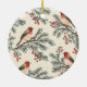Rustic Bird and Poinsettia Christmas Pattern (16) Ceramic Ornament