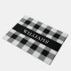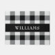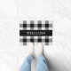 This classic black and white buffalo check pattern doormat has a black strip across the centre with a family name in white text. Personalise with your own name or to give as a gift.