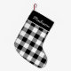 Rustic Black and White Buffalo Check Monogram Small Christmas Stocking