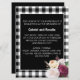 Rustic Black and White Buffalo Check Wedding Invitation