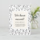 This modern change of address card, features a rustic black and white pattern with dots and a simple "we have moved" hand script font with your new address.