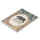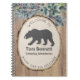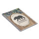 The natural composition of pine wood board with wood slice decorated with a black bear silhouette This welcoming small, light-weight spiral notebook with lined pages for your guests or as a hospitality gift for the owner. The evergreen branches, rustic wood planks and a log slice bring elements of a rustic place together for the feeling of a lodge vacation.