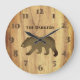 Silhouette of a black bear on rustic wood plank. Customisable family or lodge name. Rustic mountain lodge style.