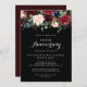 This rustic black botanical 50th wedding anniversary invitation is perfect for a classic marriage celebration. The design features burgundy, red, navy, blue and blush radiant and graceful hand-painted flowers in a black background, inspiring natural beauty.