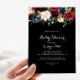 This rustic black botanical baby shower invitation is perfect for a classic baby shower. The design features burgundy, red, navy, blue and blush radiant and graceful hand-painted flowers in a black background, inspiring natural beauty.