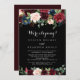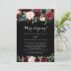 This rustic black botanical elopement reception card is perfect for a classic post elopement party. The design features burgundy, red, navy, blue and blush radiant and graceful hand-painted flowers in a black background, inspiring natural beauty.