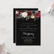 This rustic black botanical floral front and back wedding invitation is perfect for a classic wedding. The design features burgundy, red, navy, blue and blush radiant and graceful hand-painted flowers in a black background, inspiring natural beauty.