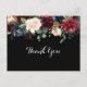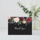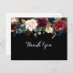 This rustic black botanical wedding thank you postcard is perfect for a classic wedding. The design features burgundy, red, navy, blue and blush radiant and graceful hand-painted flowers in a black background, inspiring natural beauty.