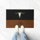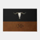 Rustic Brown Leather Image & Black Monogram Door Mat. Antlers.
