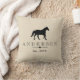 Rustic elegant black horse silhouette throw pillow featuring your family's name and established date. The backside of the pillow has a large monogram letter.